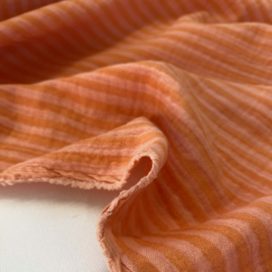 Double gauze, ook wel bekend als hydrofiel doek, tetra of mousseline, is een heerlijk zachte en luchtige stof die geliefd is om haar comfort en veelzijdigheid. Deze variant valt extra op dankzij het speelse streeppatroon met zowel brede als fijne strepen.